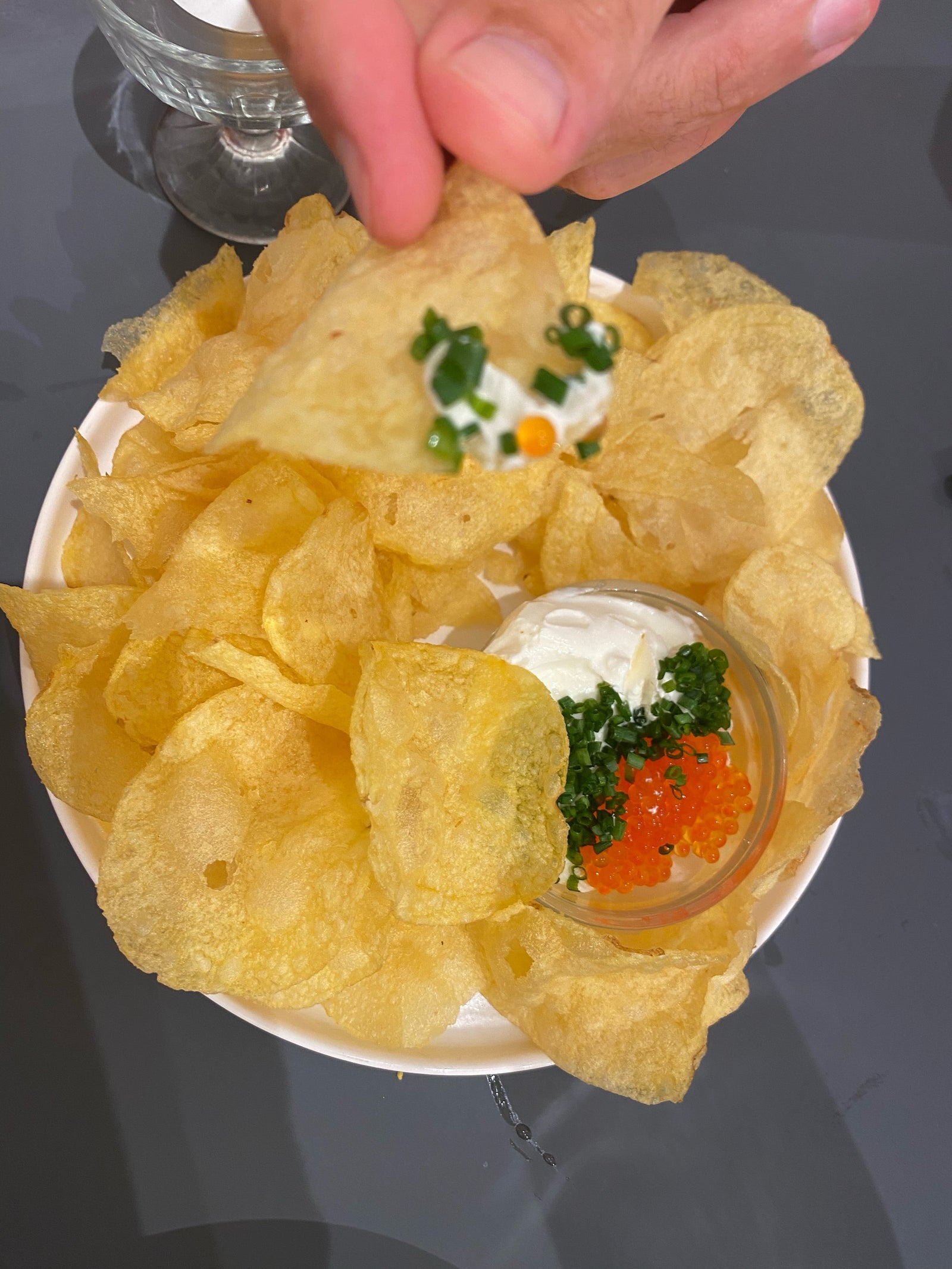 Enjoy with a crispy potato chip topped with Jamón Serrano, or crème fraîche, sprinkled chives and a delicate salmon roe. A piquillo pepper stuffed with anchovies is another favorite, and a magnificent pairing. Find the recipe here.