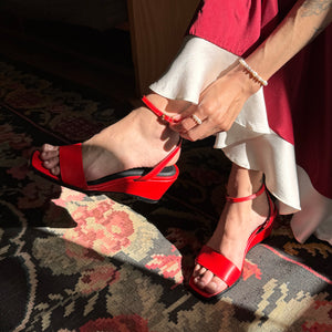 • A spirited evolution of a timeless silhouette, the Nueva Wedge is your invitation to dance the evening away. This sandal is contemporary and elegant in form, but doesn’t compromise on function. Made from cow’s nappa leather, with a supple lamb’s leather lining for maximum comfort. A modest 2⅝” wedge heel gives enough lift to elevate any outfit, while golden buckles allow for an adjustable fit.