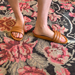 While our Sandalias may feel snug when new, after the first few wears the delicate leather will stretch slightly, molding beautifully to the shape of your foot. We do suggest ordering up if you are a half size.